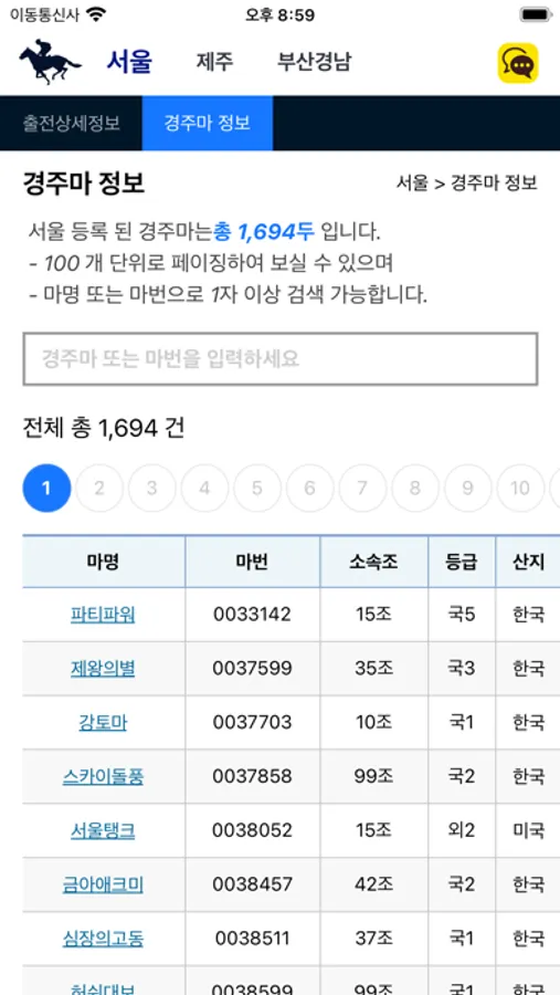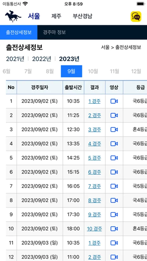 한국마사회에서 제공하는 국내 경마장 경기 정보를 사용자 편의에 맞게 정리하여 제공합니다. (서울 / 제주 / 부산경남)