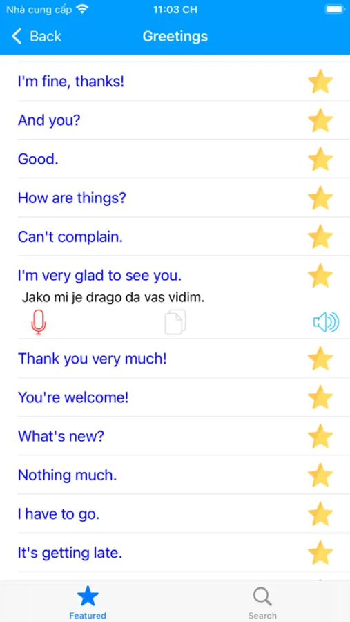 Learn Croatian Language Offline has 1066 common phrase in Croatian Farsi with sound and you can use all of them without network. Very useful for you learn and go to travel to the world.