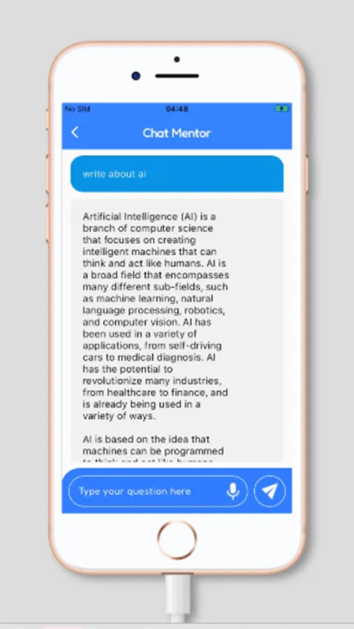 Unlock Your Full Potential with AI Mentor Mobile! Welcome to the future of personalized learning and growth. With AI Mentor Mobile, your pocket-sized mentor is here to guide and empower you every step of the way. Seamlessly integrated into your iOS device, this app offers expert insights, tailored advice, and skill-building exercises that adapt to your unique goals and aspirations. Whether you're aiming for career advancement, personal development, or acquiring new skills, AI Mentor Mobile provides a customized learning journey like no other. Elevate your capabilities and achieve success on your terms – download now and embark on a transformative path with your AI mentor!