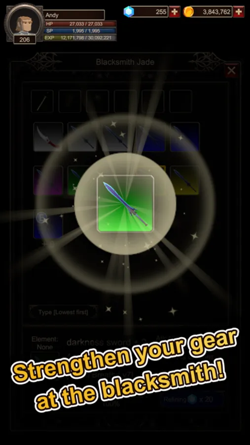 Weapons and armor can be enhanced by refining them at the blacksmith.