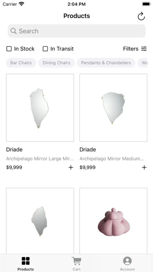 - Efficient Filtering: Find products with ease using our powerful filters. Tailor your searches, like "bar stools" under $5000 that are "in stock", for a seamless searching experience.