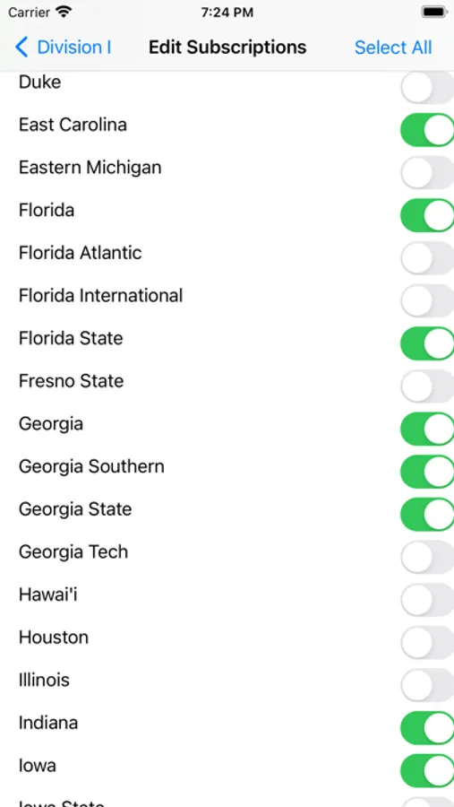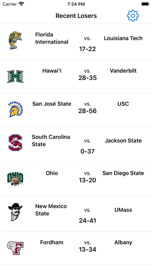 The app includes all FBS,FCS, Division II, and Division III teams so you'll never miss out on when that niche rivalry school loses. It also comes with a preconfigured setting based on a survey* of the most disliked college teams (Florida State and Georgia).