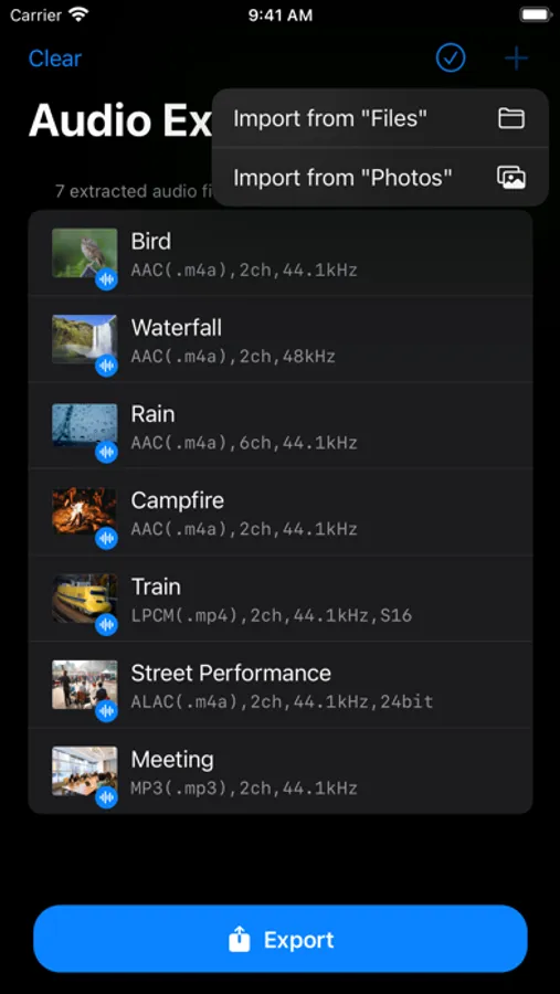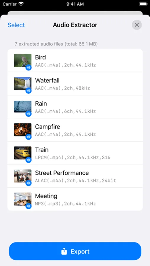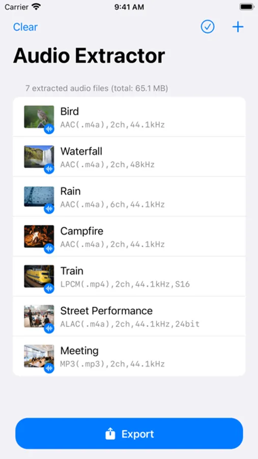 Lossless Audio Extractor allows you to easily extract audio from your video files on any Mac, iPad, or iPhone. It does not perform re-encoding, preserving the original audio quality.
