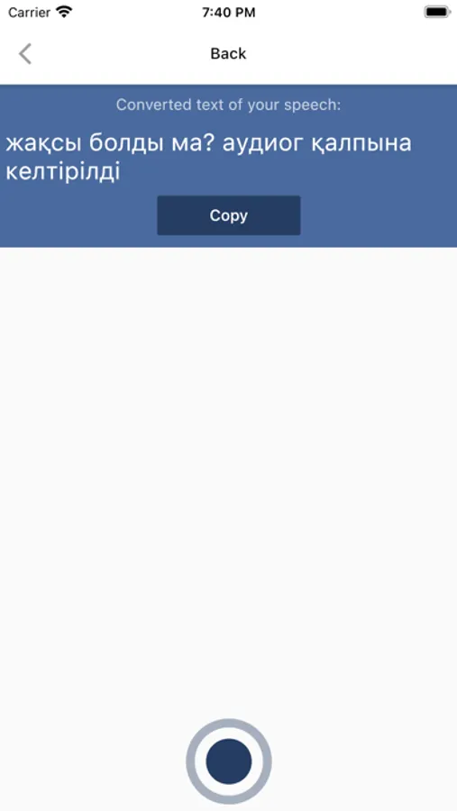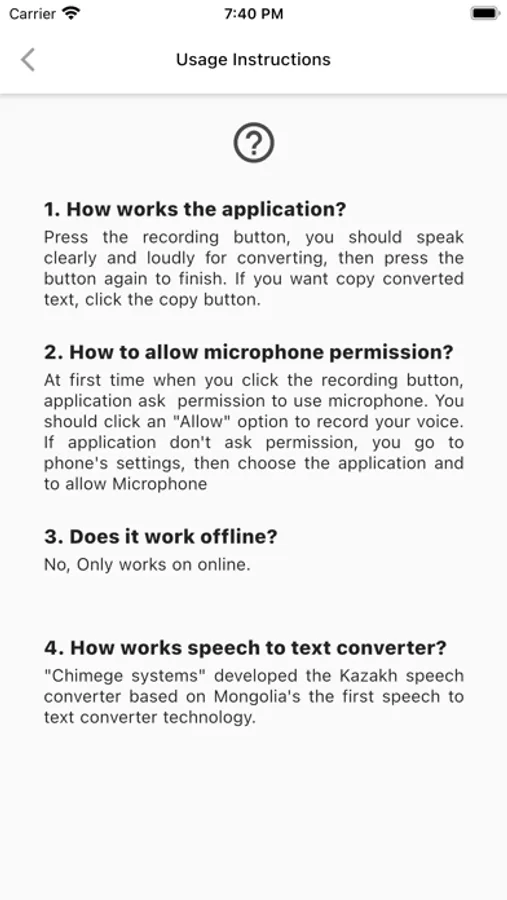 This app is a demonstration of the first-ever Kazakh voice processing technology. We are developing natural language processing for Kazakh language.