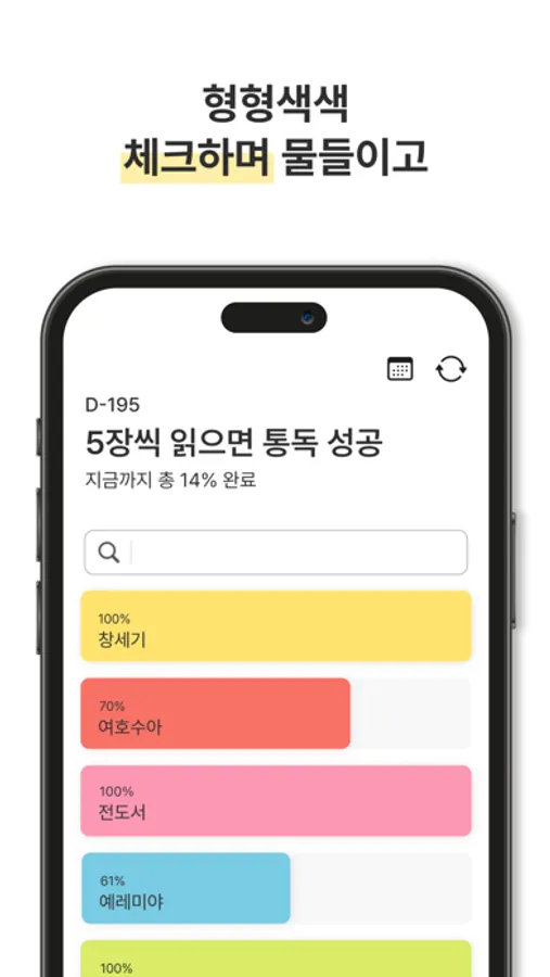 형형색색 리스트로 한 눈에 성경책 목록을 확인하세요!