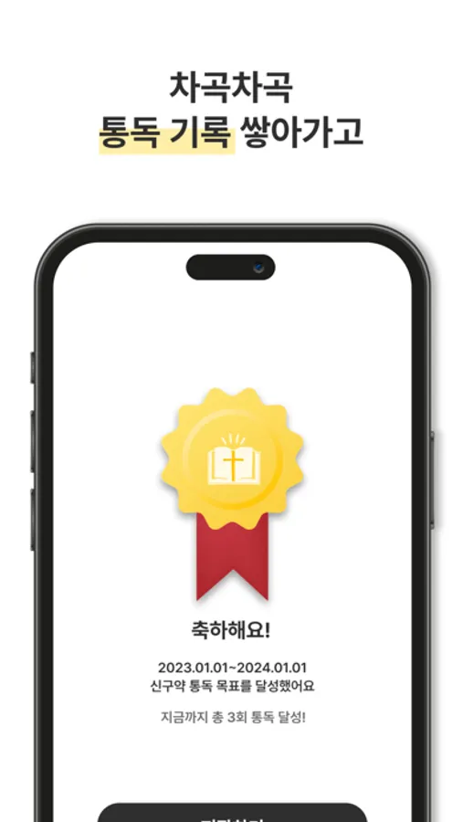 통독 목표 달성 횟수는 데이터베이스에 저장되어 나만의 통독 기록을 쌓아갈 수 있어요!