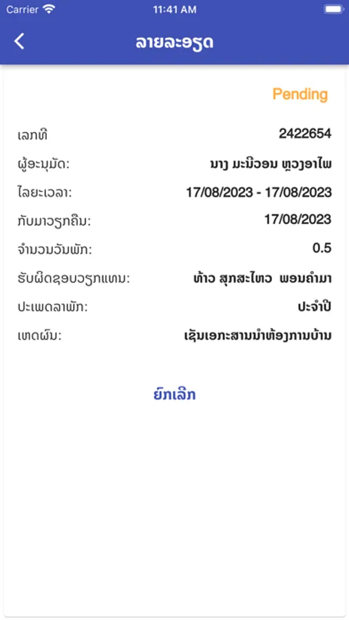 3.Users can see leaves details like start date ,end date, responsible person, manager, status of