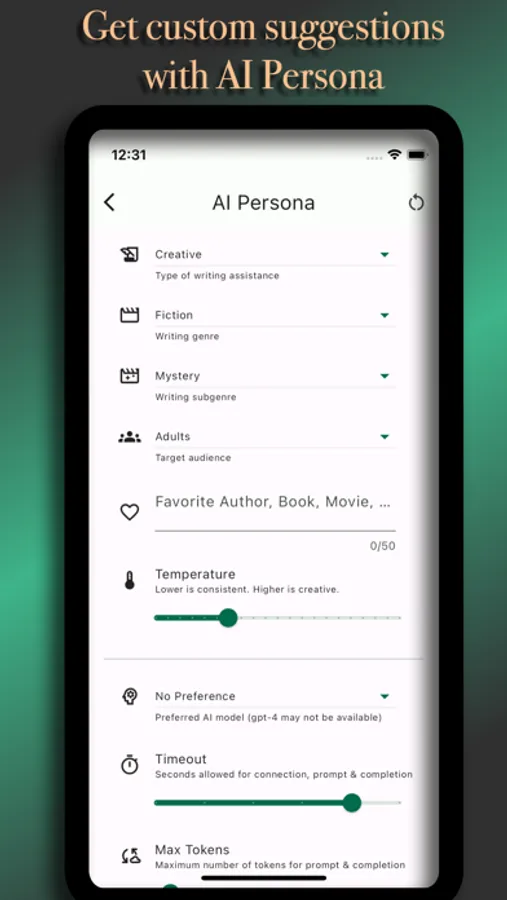 - Optional AI Persona for more personalized and accurate AI suggestions tailored to your writing style.
