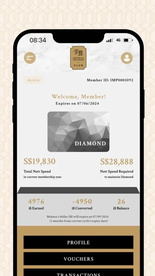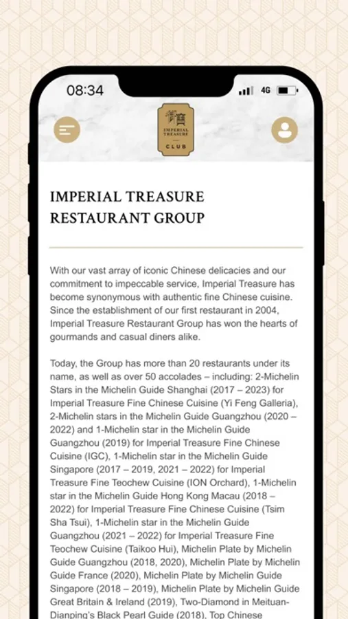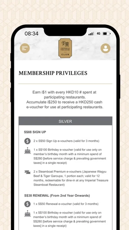 Imperial Treasure mobile app allows for membership sign-up to enjoy exclusive privileges, dining rewards and rebates on spending at participating restaurants.