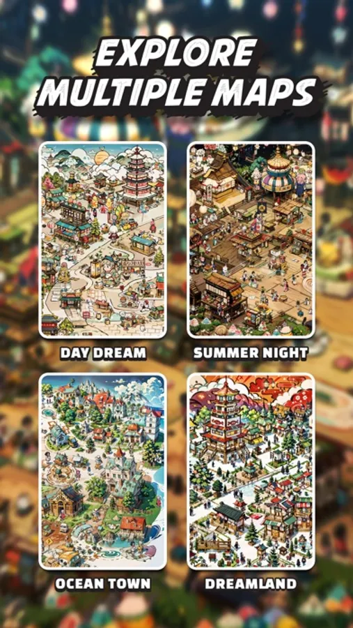 - Multiple scenes and maps. Explore different locations on the map, from city streets to deep jungle, and unlock new maps by uncovering various objects.