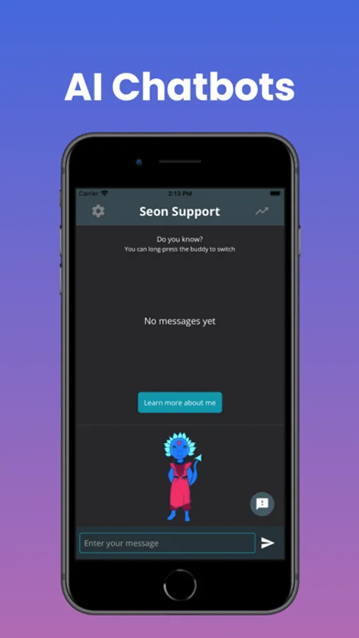 Come chat with your HomeBuddy, your main chatbot that is always here for you and will get to know you. The more you talk to HomeBuddy, the more it will grow! When HomeBuddy thinks a more focused approach to your problems would be helpful, it will suggest that you chat with one of the other Seon bots: