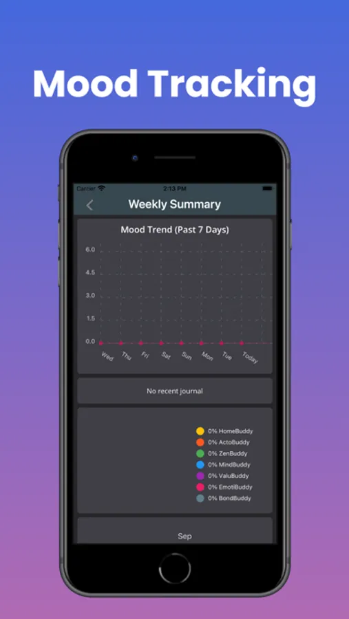 Our chatbots use evidence-based skills from cognitive behavioral therapy (CBT), Acceptance and Commitment Therapy (ACT), Dialectical Behavior Therapy (DBT), and Mindfulness-Based Cognitive Therapy (MBCT) to help you cope with difficulties. To keep track of your progress, you can read journal entries summarizing your useful conversations with the bots and review graphs or your mood over time.