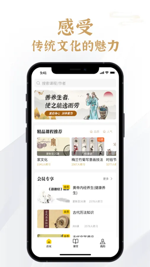 凝聚历史长河中文人巨匠的人生感悟和运用于生活中的大智慧,集先贤著作、传统文化启悟课程、历代学者的研究成果于一体,为传统文化爱好者提供研读和交流的平台。在这里,您将阅览先贤著作,去传统文化中寻找我们所需要的精神力量。感受名家的伦理思想、道德观念、教育原则以及处事哲学,从中汲取智慧和力量,找到容灵魂小憩的净土。我们诚邀您走进易象生命管理课堂,通过系统学习传统文化课程,深入了解传统文化之精髓,传千年之经义,燃万古之明灯。内容涵盖历史、儒释道、心理学、易学、中医养生等诸多类目,除了深度学习之外,您还可以和志同道合的传统文化爱好者们交流探讨,互相学习,共同进步。