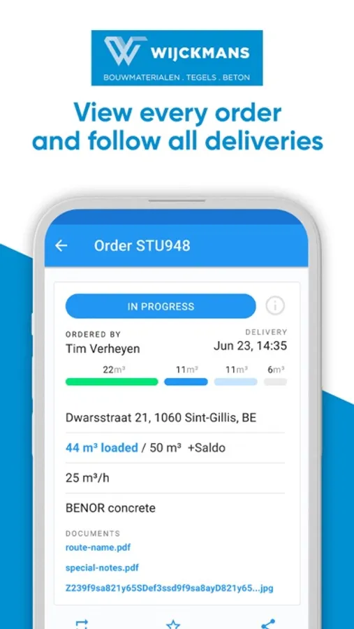 With the Wijckmans app you can easily and quickly place an order at Wijckmans. In addition, you can track all your orders in the app, regardless of how you placed them. All deliveries are updated in real time, so you always stay informed.