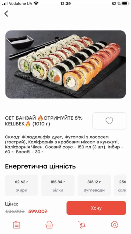 З додатком Yammi Roll замовляти суші, роли, cети легко, оскільки в додатку доступні детальні описи і фотографії страв