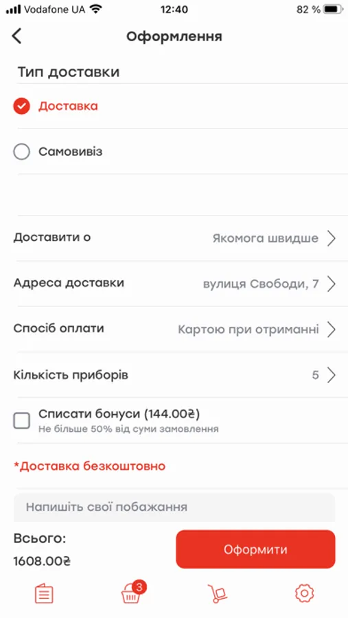 • встановити бажаний час доставки замовлення за вказаною адресою;