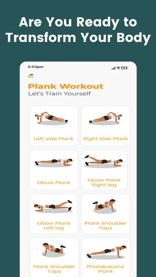 Variety of Plank Styles: From forearm planks to side planks and beyond, our app introduces you to a variety of plank styles that target different areas of your core muscles. Keep your routine engaging and effective.