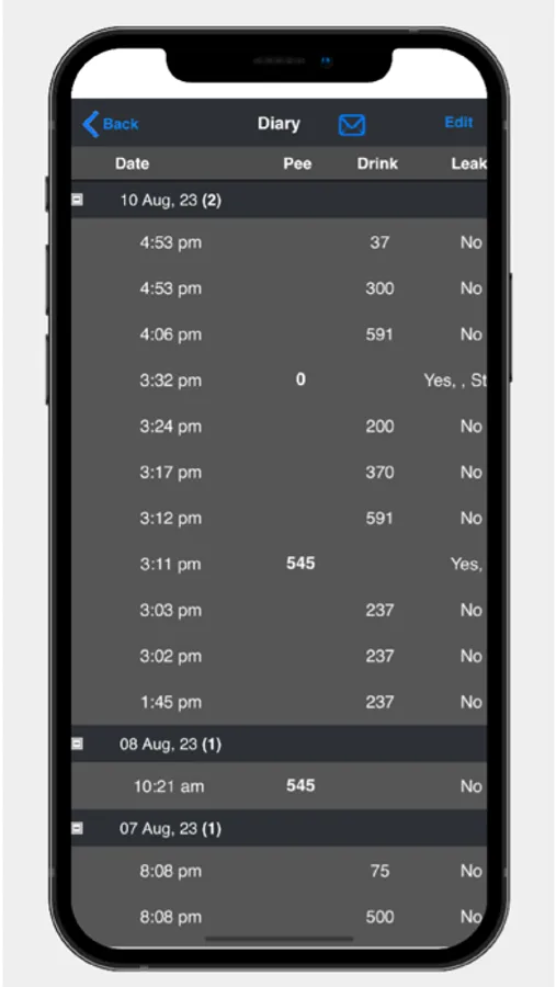 Take control of your urinary health with Bladder Diary – your ultimate companion for tracking, managing, and understanding your bladder habits. Whether you're dealing with urinary incontinence, overactive bladder, or simply aiming to maintain a healthy urinary routine, Bladder Diary empowers you to make informed decisions about your well-being.