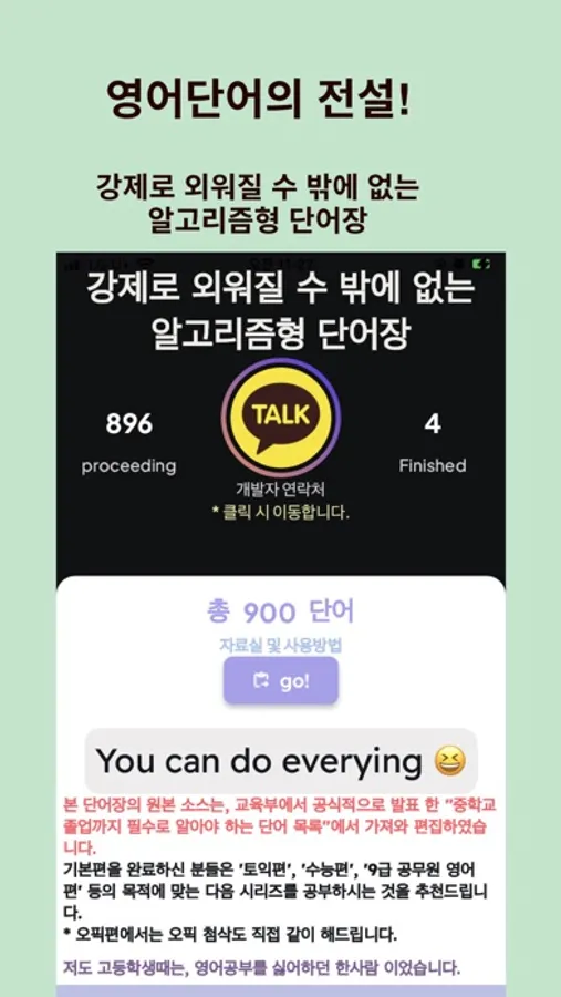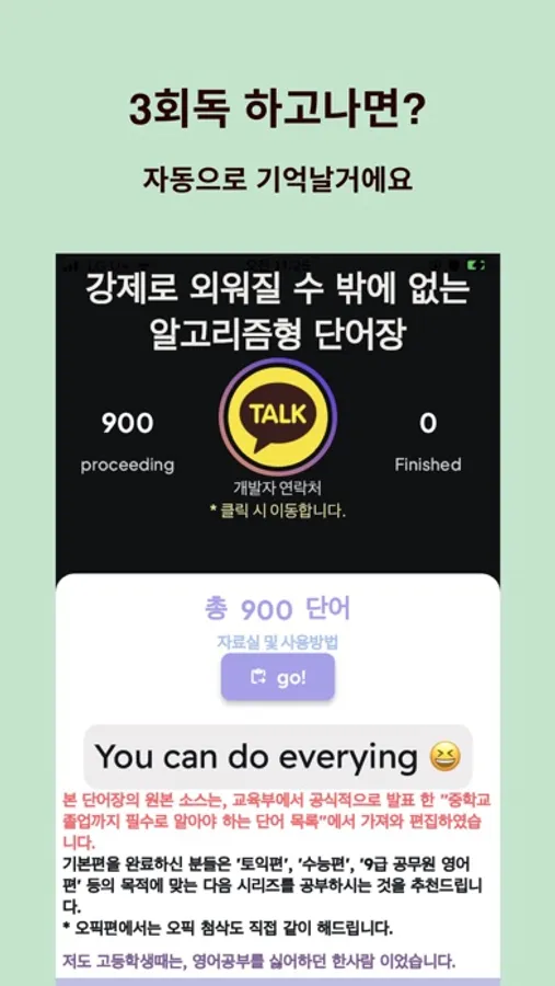 우연찮은 계기로 영어에 흥미를 느끼게 되고, 군대에 있는 기간동안 9000개의 단어를 여러번 회독해서 보았던 게 제 영어공부의 시작점이었지요. 저는 '암기'관련된 것들을 못하는 사람인 줄 알았는데, "다 할 수 있구나" 하는 것을 느꼈습니다. 또, 어휘량이 한번 빵빵해지면 영어가 얼마나 쉬워지는지도 몸소 깨달았지요.