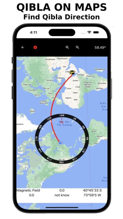 - Show Altitude Speed Calculate degrees of Qibla from existing place