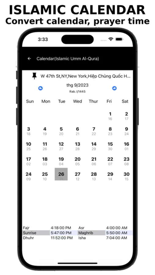 - Muslim prayer times with islamic calendar : Fair, Asr. Sunrise, Maghrib, Dhuhr, Isha