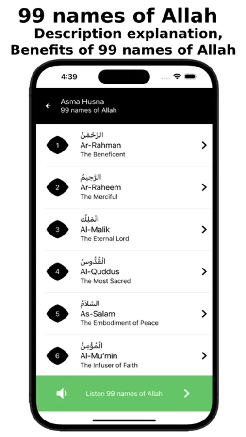 - Listen 99 names of allah by audio player
