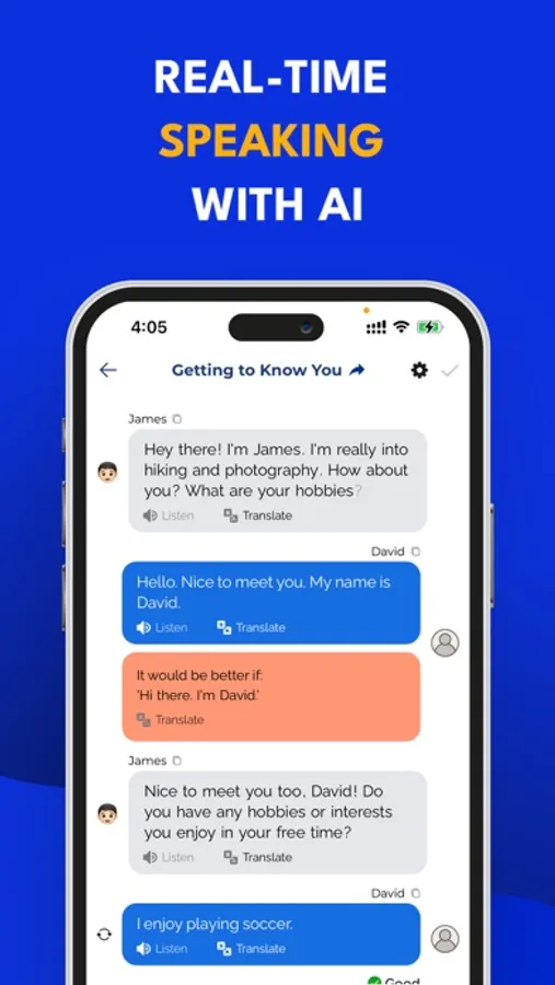 • Intelligent conversation practice with context-aware AI