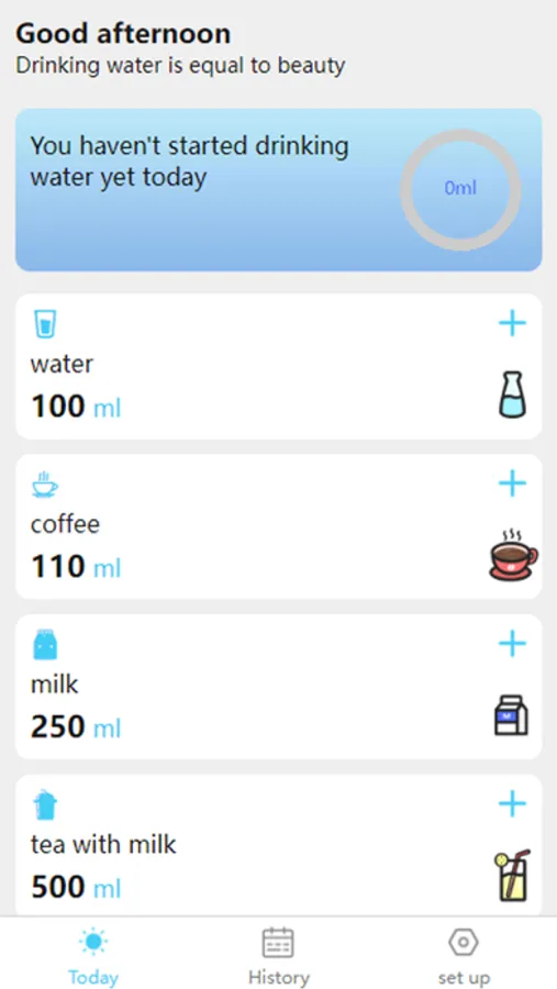 ·Diversified beverage selection: supports recording different types of beverages, allowing you to manage your drinking records more personalized.