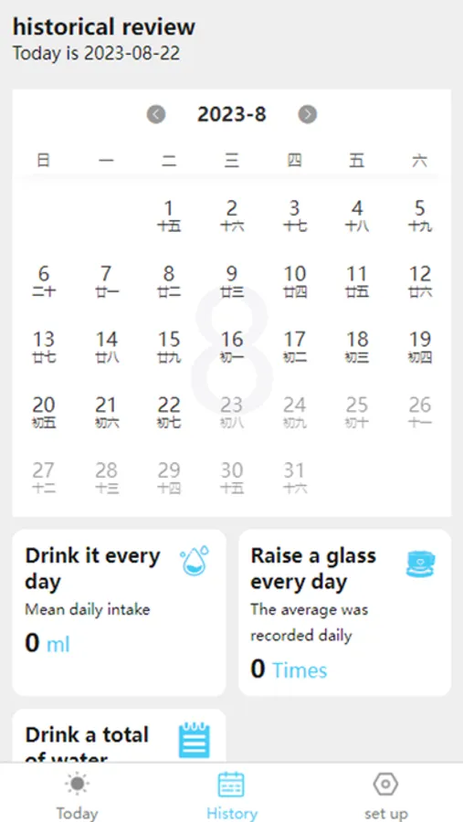 ·Calendar View Record: Presents your drinking records in an intuitive calendar format, making it easy for you to view and analyze your drinking situation at any time.
