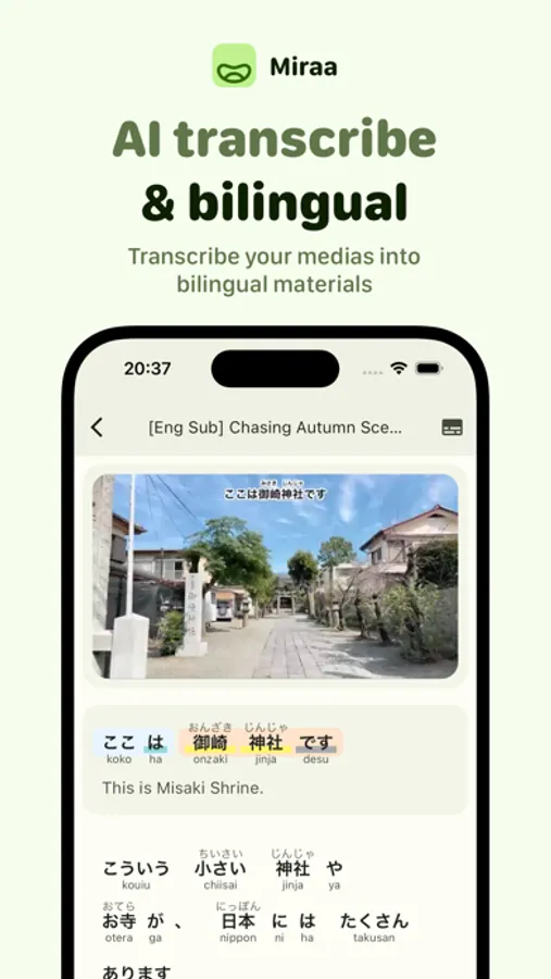 Want to learn languages and shadowing through videos and podcasts you love? Try Miraa!