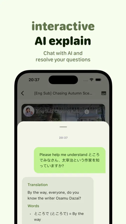 Stuck on something you don't understand? No worries, Miraa's AI interpretation helps you grasp every word and grammar rule in depth. Chatting with AI makes learning languages so easy and fun.