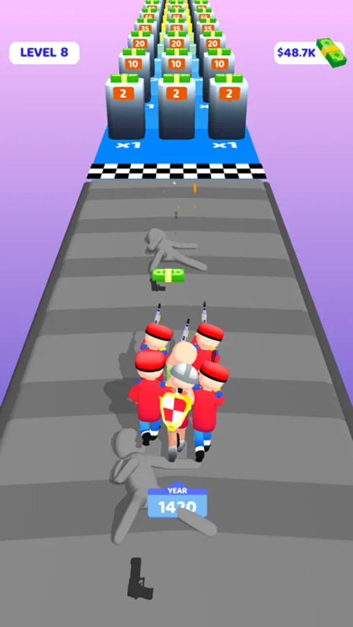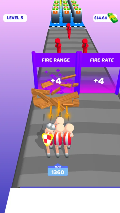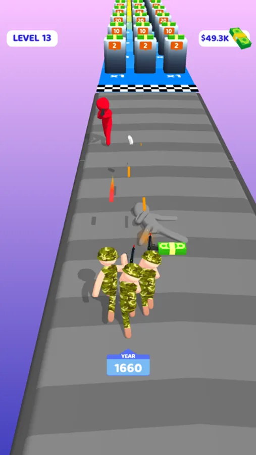 Build your army with the strongest soldiers and weapons! Place them wisely to win the war! Upgrade your rate, range and year stats within the level by using doors! At the end of the level, reach to the further point!