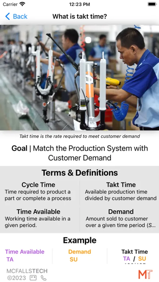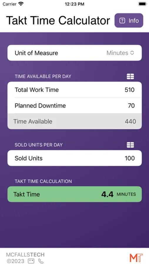 The Takt Time Calculator makes it easy to figure out the working time available for a given production area, the daily demand, and the takt time required to meet customer demand. Takt Time is a valuable measurement that's a key part of Lean Manufacturing. By ensuring production areas are working at a pace to meet customer demand, you can ensure you're always on time and never late to the customer.