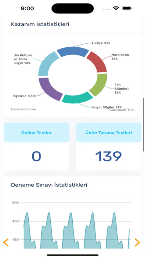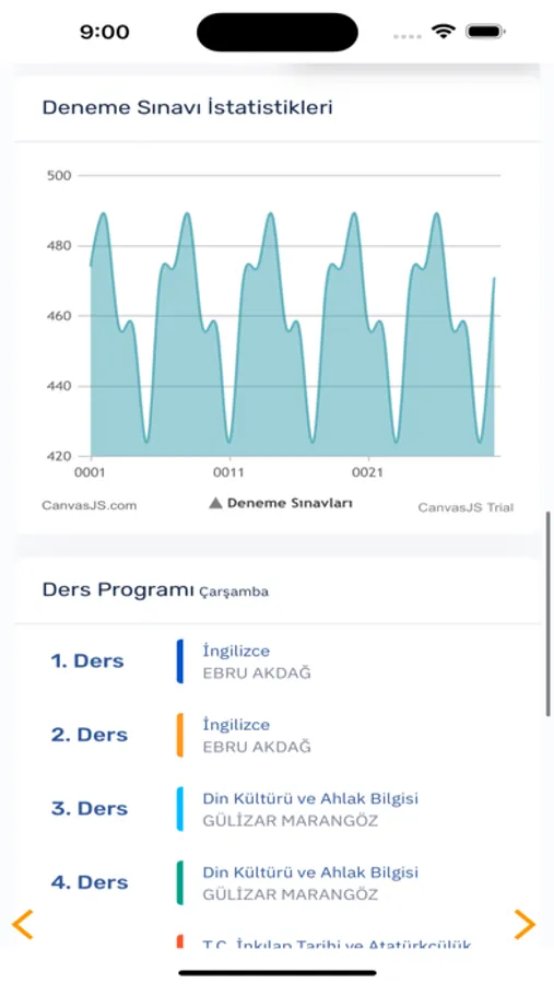 After logging in to the system, students and parents can follow the course schedule, absenteeism information and homework on a daily basis. In addition, they can reach the results of the trial exam held in the institution, and can repeat the missing subjects with course videos and screening tests.