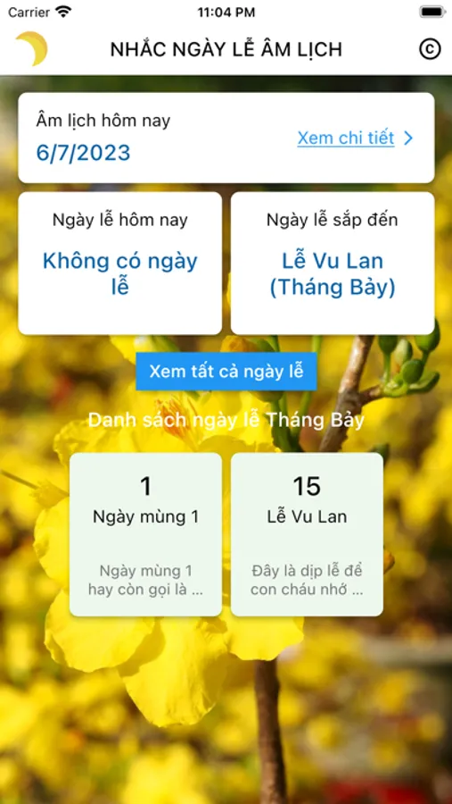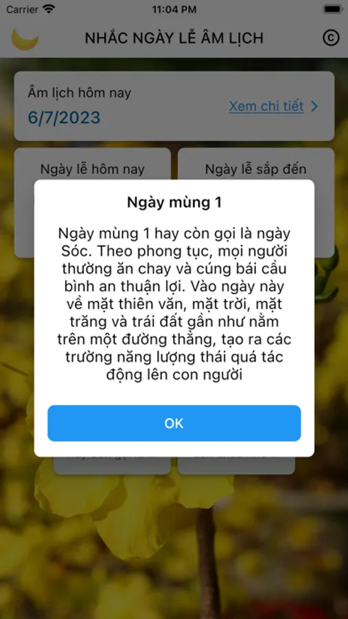 Ứng dụng đơn giản nhắc nhở người dùng về các ngày Lễ Âm Lịch sắp diễn ra