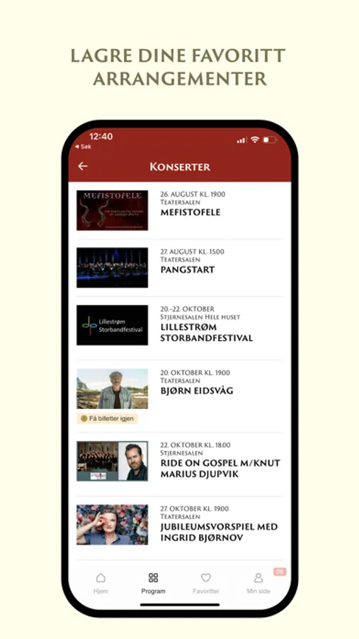 Lillestrøm kultursenter byr på et bredt spekter av kulturopplevelser! Hos oss kan du oppleve nasjonale og internasjonale artister, show, stand-up, teaterforestillinger, kunstutstillinger med mer. Med denne appen kan du følge med på arrangementene du er ekstra interessert i, samtidig som du til enhver tid holder deg oppdatert på alt som skjer hos oss. Du får også varsler på telefonen når noe nytt legges ut, om det blir utsolgt, avlyst eller har få billetter igjen.