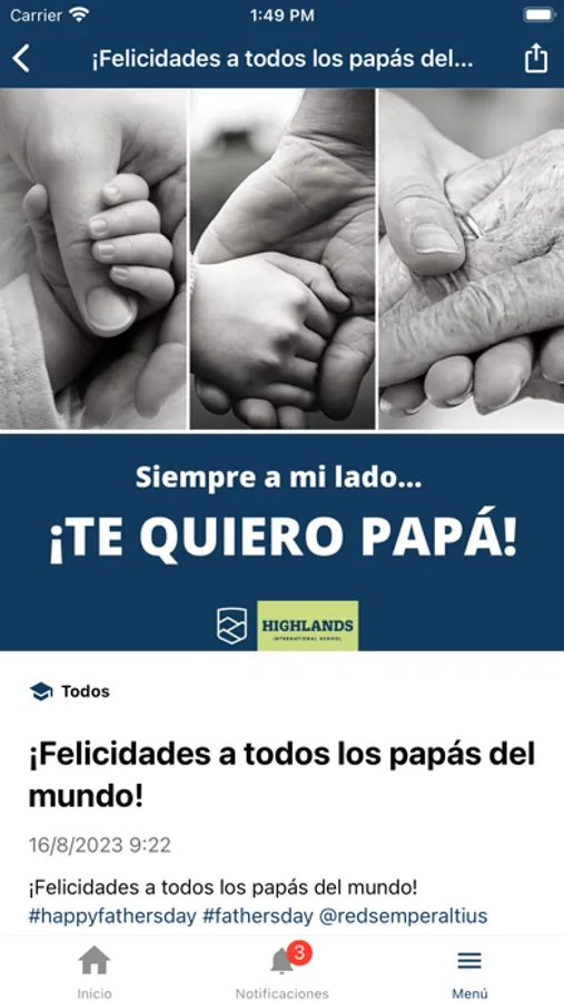 Esta app es una herramienta que te permite estar conectado con la actividad del Highlands International School México.