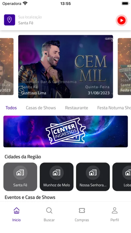 Nunca foi tão fácil comprar e armazenar seu ingresso no seu celular. No aplicativo Center Ingressos, você tem acesso aos eventos de sua região, pode comprar sem sair de casa, usando apenas seu celular, com muita facilidade e rapidez.