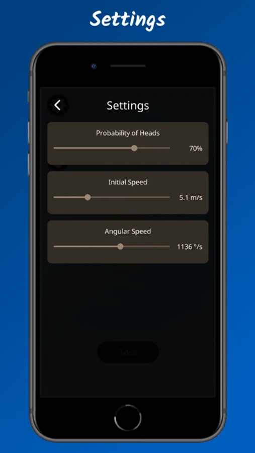 You can also change the coin’s initial speed so it goes more or less high in the air when flipped. The coin's angular velocity can be modified too.
