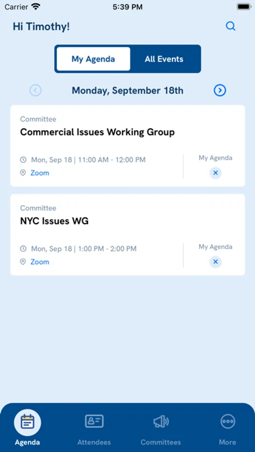 Browse the list of committee meetings, classes, and events for the conference and add them to your own personal calendar.