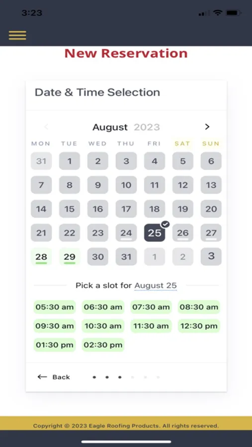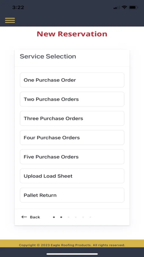 Trucker reservation creation app for Eagle Roofing.