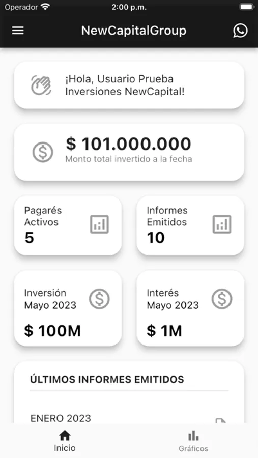 Nuestra aplicación es la solución definitiva para inversores. Permite el manejo de varias cuentas de empresas, consulta resúmenes financieros en tarjetas informativas, accede a informes recientes en PDF y explora gráficos interactivos de intereses y montos. También, encuentra informes anteriores rápidamente con un buscador intuitivo. Te proporcionamos una plataforma única y eficiente para controlar tus inversiones de manera efectiva. No ofrece compras dentro de la aplicación y no cuenta con publicidad.