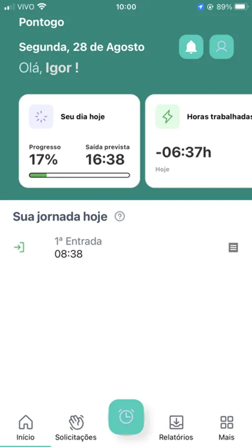 Acompanhe seu saldo de horas e horários de registro a qualquer momento, diretamente em seu celular.