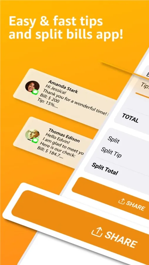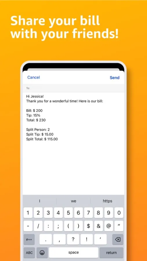 Effortlessly distribute bill information to each friend along with the corresponding tip amount, all with just a single click!