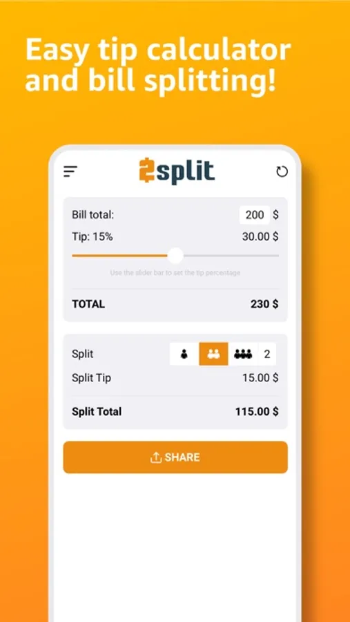 - Intuitive slider for adjusting tip percentage & splitters