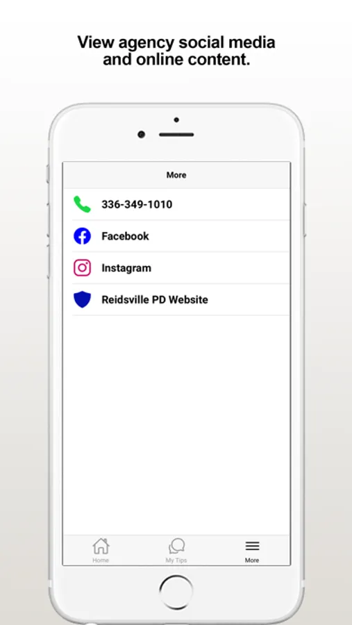 The Reidsville PD app provides citizens the ability to submit anonymous tips to the Reidsville, NC Police Department. The app also displays agency crime alerts and other organization web and social media content.