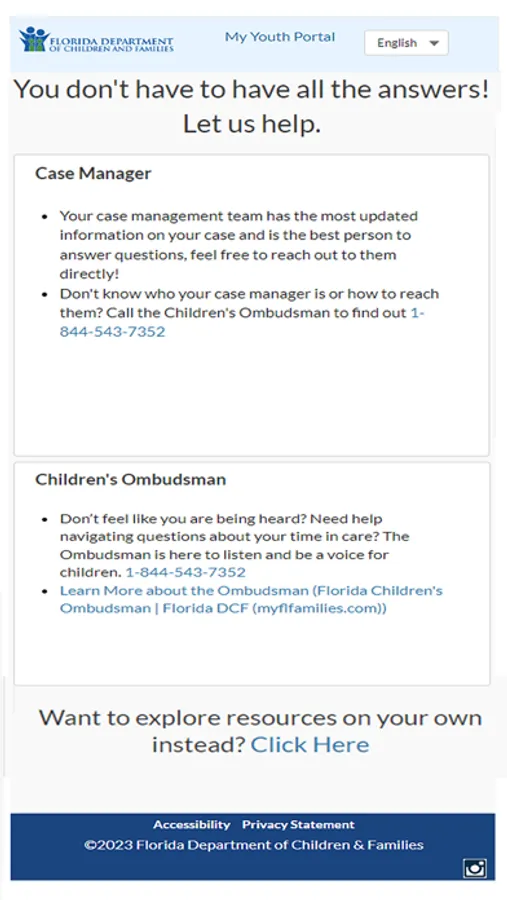 The official Florida Department of Children and Families (DCF) myYouthportal makes it easier for current and former foster youth to navigate support, resources, and programs. The app is free to download and provides user-friendly navigation for mobile devices.