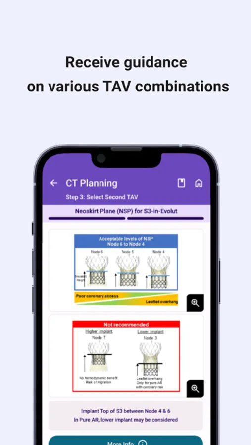 After the user selects a particular valve type and size, Redo-TAV provides them with the valve's CT appearance and dimensions. Once the second valve is chosen, the app guides the user through different steps of assessment and collates the information. Using systematic step-by-step assessment, the app ensures that no aspect of assessment is missed. The app does not make recommendations to the user but simply guides them to the next step based on their choice.