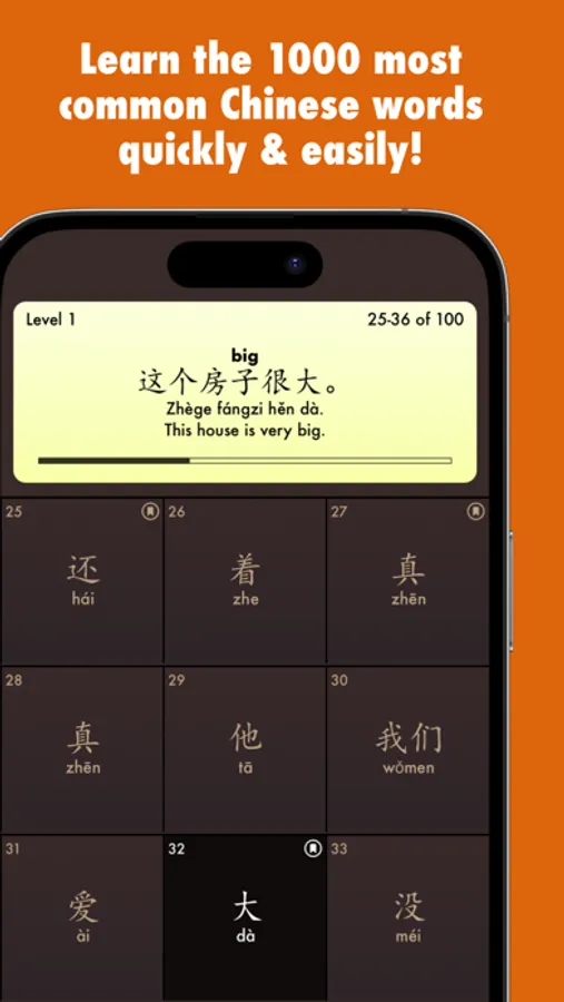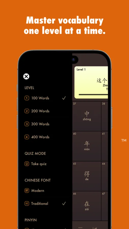 The vocabulary in this app comprises the 1000 most frequently used words from Chinese internet and social media, i.e. the real Chinese used in everyday life!