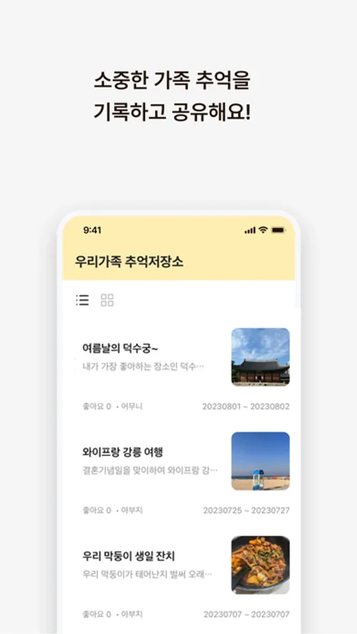 • 가족과 공유하고 싶은 사진들을 공유해봐요.